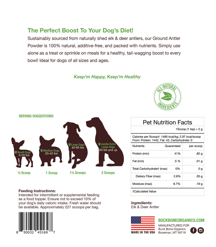 - Includes 1 - 16 oz Bag of 100% Antler Powder, scoop included